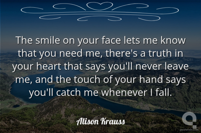 The smile on your face lets me know that you need me, there's a truth in your heart that says you'll never leave me, and the touch of your hand says you'll catch me whenever I fall.