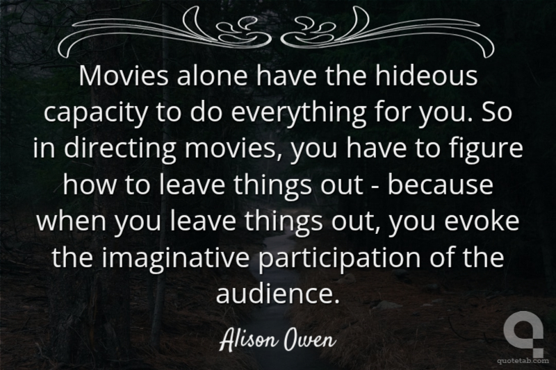 Movies alone have the hideous capacity to do everything for you. So in directing movies, you have to figure how to leave things out - because when you leave things out, you evoke the imaginative participation of the audience.