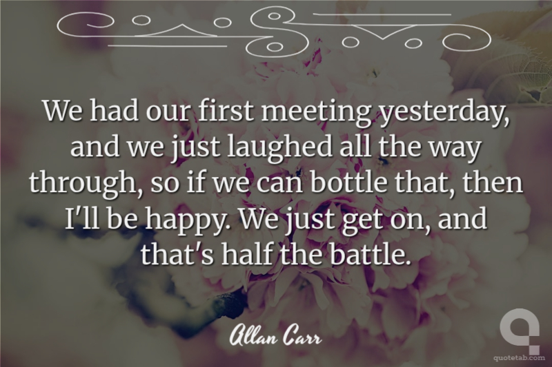 We had our first meeting yesterday, and we just laughed all the way through, so if we can bottle that, then I'll be happy. We just get on, and that's half the battle.