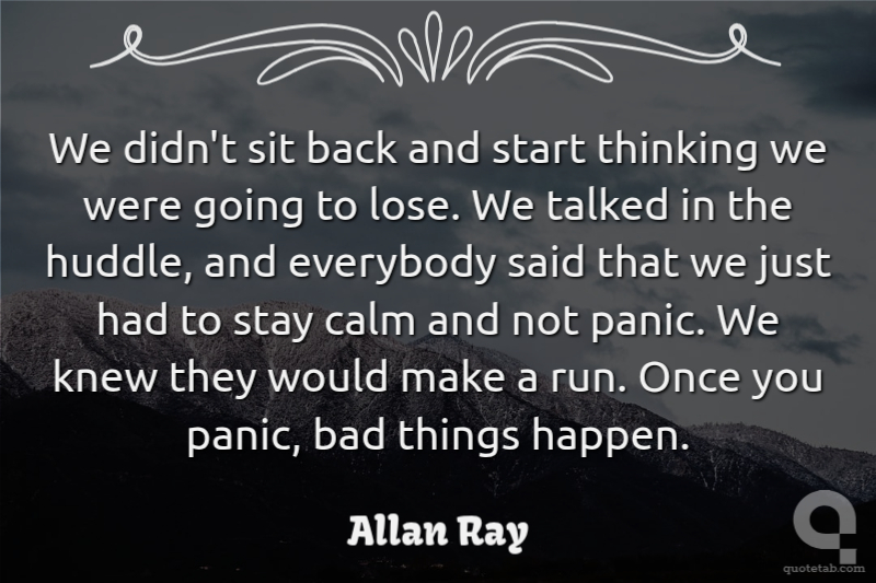 We didn't sit back and start thinking we were going to lose. We talked in the huddle, and everybody said that we just had to stay calm and not panic. We knew they would make a run. Once you panic, bad things happen.