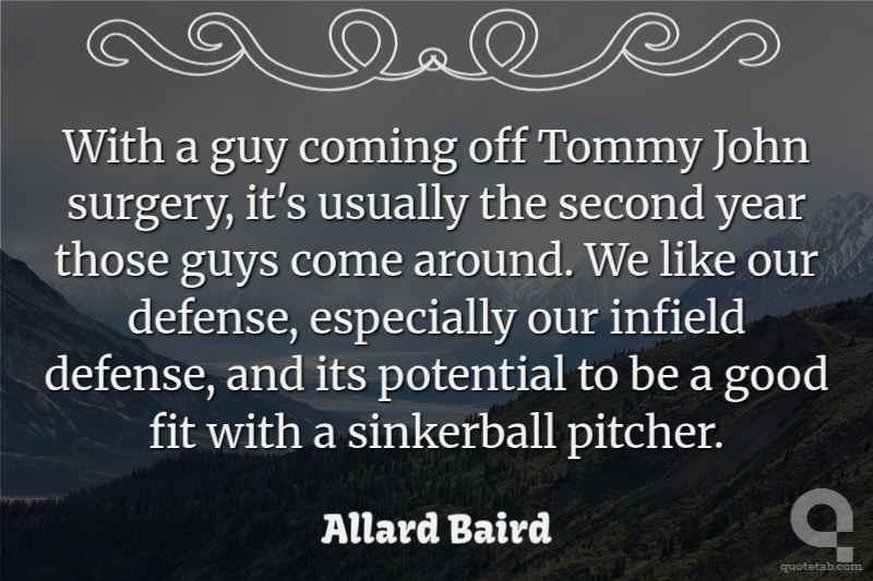 With a guy coming off Tommy John surgery, it's usually the second year those guys come around. We like our defense, especially our infield defense, and its potential to be a good fit with a sinkerball pitcher.
