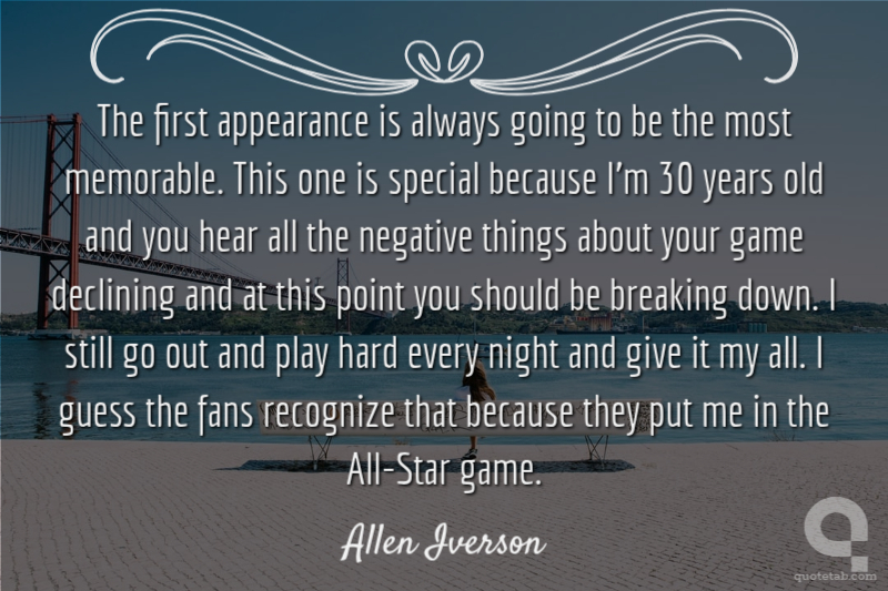 The first appearance is always going to be the most memorable. This one is special because I'm 30 years old and you hear all the negative things about your game declining and at this point you should be breaking down. I still go out and play hard every night and give it my all. I guess the fans recognize that because they put me in the All-Star game.