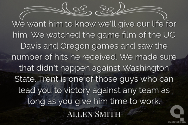 We want him to know we'll give our life for him. We watched the game film of the UC Davis and Oregon games and saw the number of hits he received. We made sure that didn't happen against Washington State. Trent is one of those guys who can lead you to victory against any team as long as you give him time to work.
