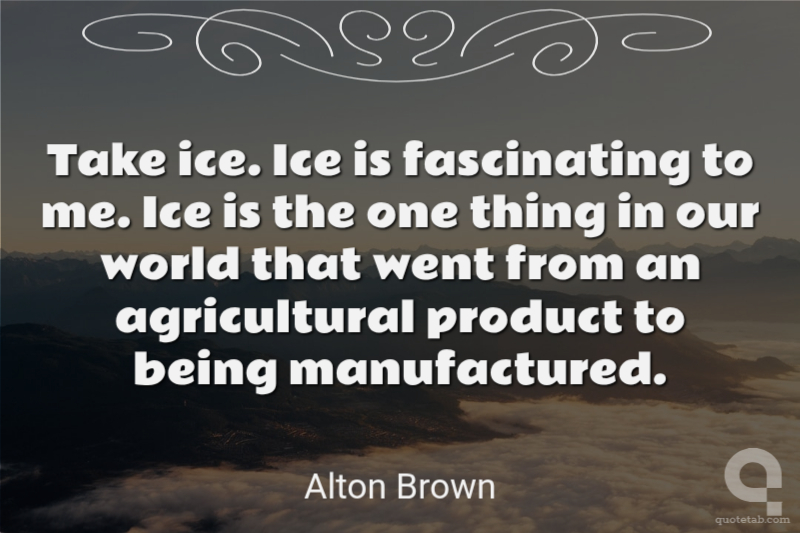 Take ice. Ice is fascinating to me. Ice is the one thing in our world that went from an agricultural product to being manufactured.