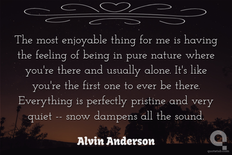 The most enjoyable thing for me is having the feeling of being in pure nature where you're there and usually alone. It's like you're the first one to ever be there. Everything is perfectly pristine and very quiet -- snow dampens all the sound.