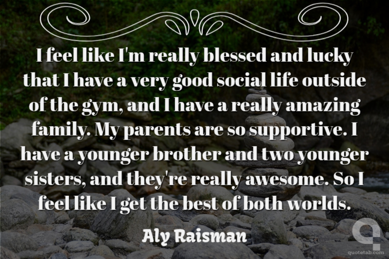 I feel like I'm really blessed and lucky that I have a very good social life outside of the gym, and I have a really amazing family. My parents are so supportive. I have a younger brother and two younger sisters, and they're really awesome. So I feel like I get the best of both worlds.