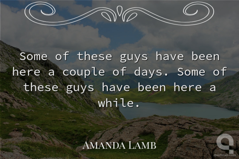 Some of these guys have been here a couple of days. Some of these guys have been here a while.