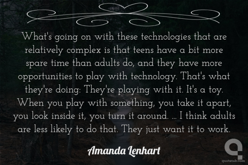 What's going on with these technologies that are relatively complex is that teens have a bit more spare time than adults do, and they have more opportunities to play with technology. That's what they're doing: They're playing with it. It's a toy. When you play with something, you take it apart, you look inside it, you turn it around. ... I think adults are less likely to do that. They just want it to work.