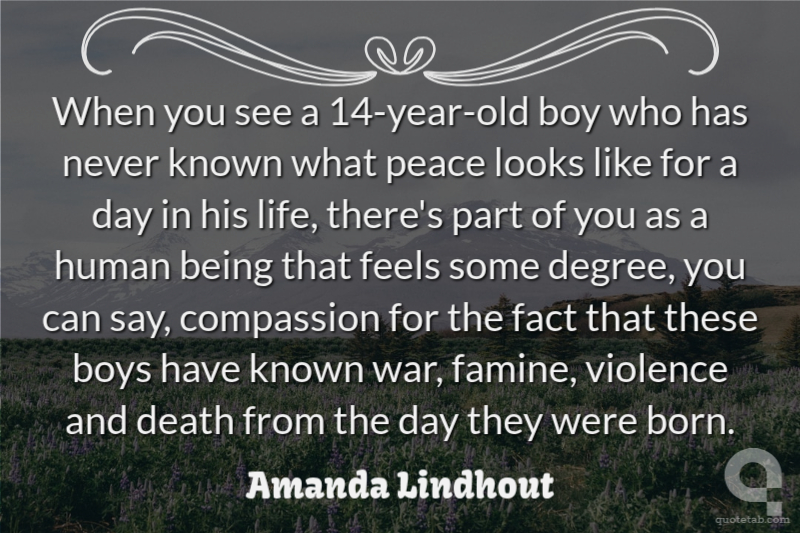 When you see a 14-year-old boy who has never known what peace looks like for a day in his life, there's part of you as a human being that feels some degree, you can say, compassion for the fact that these boys have known war, famine, violence and death from the day they were born.