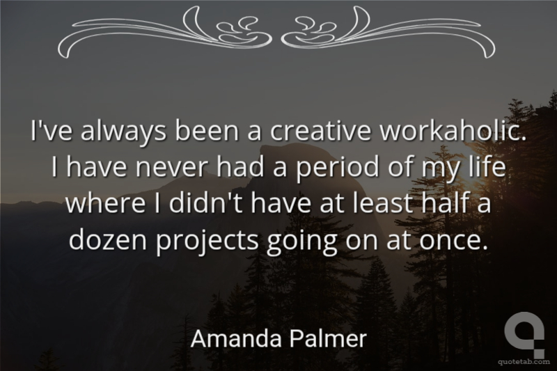 I've always been a creative workaholic. I have never had a period of my life where I didn't have at least half a dozen projects going on at once.