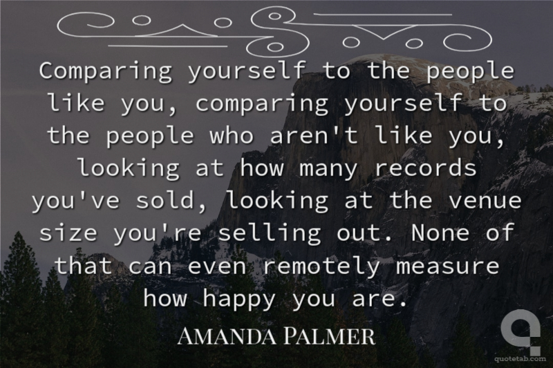 Comparing yourself to the people like you, comparing yourself to the people who aren't like you, looking at how many records you've sold, looking at the venue size you're selling out. None of that can even remotely measure how happy you are.