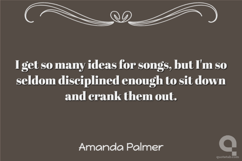 I get so many ideas for songs, but I'm so seldom disciplined enough to sit down and crank them out.