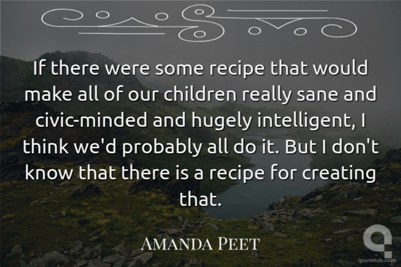 If there were some recipe that would make all of our children really sane and civic-minded and hugely intelligent, I think we'd probably all do it. But I don't know that there is a recipe for creating that.