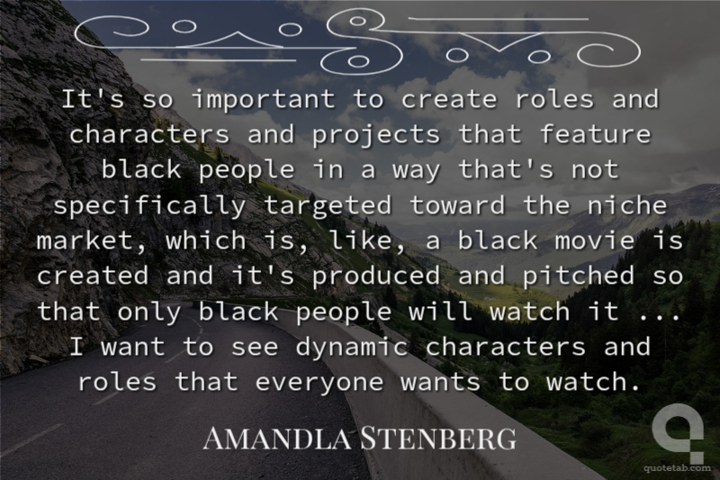 It's so important to create roles and characters and projects that feature black people in a way that's not specifically targeted toward the niche market, which is, like, a black movie is created and it's produced and pitched so that only black people will watch it ... I want to see dynamic characters and roles that everyone wants to watch.