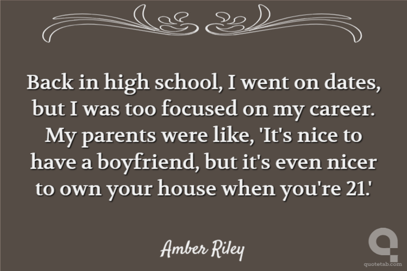 Back in high school, I went on dates, but I was too focused on my career. My parents were like, 'It's nice to have a boyfriend, but it's even nicer to own your house when you're 21.'