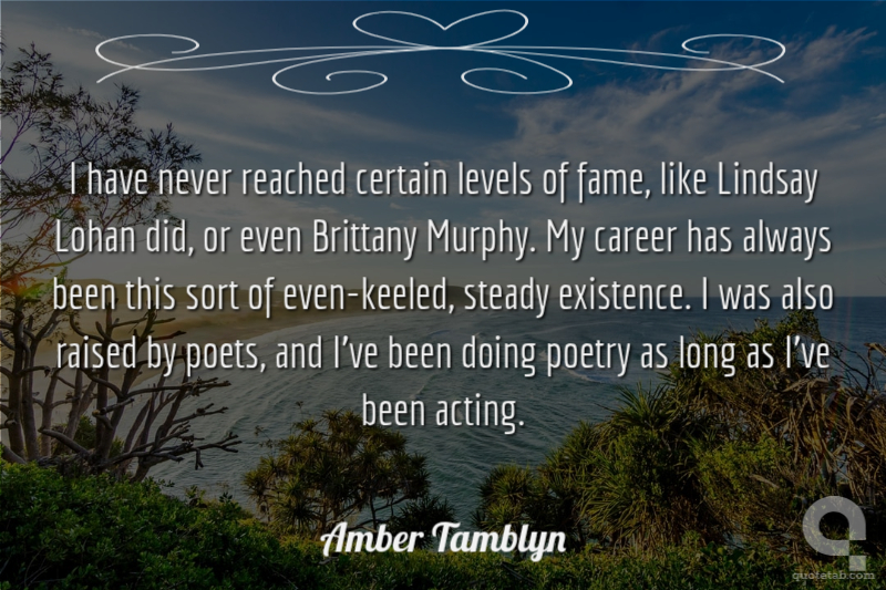 I have never reached certain levels of fame, like Lindsay Lohan did, or even Brittany Murphy. My career has always been this sort of even-keeled, steady existence. I was also raised by poets, and I've been doing poetry as long as I've been acting.