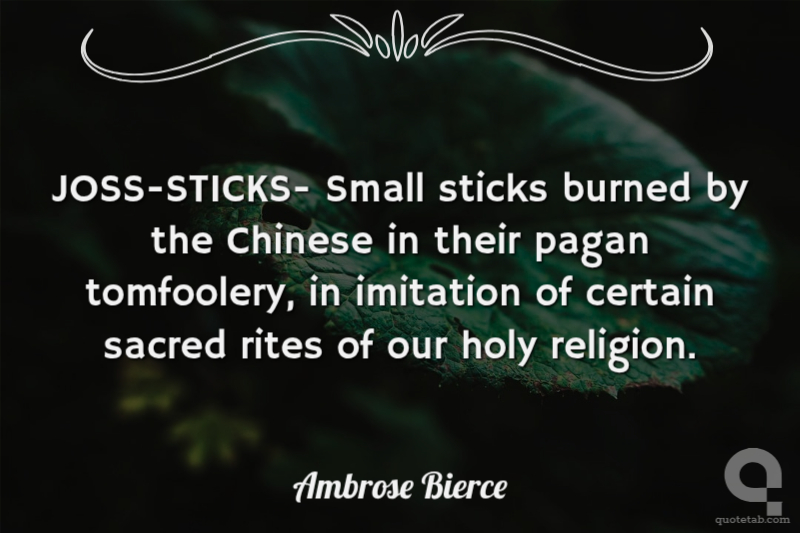JOSS-STICKS- Small sticks burned by the Chinese in their pagan tomfoolery, in imitation of certain sacred rites of our holy religion.