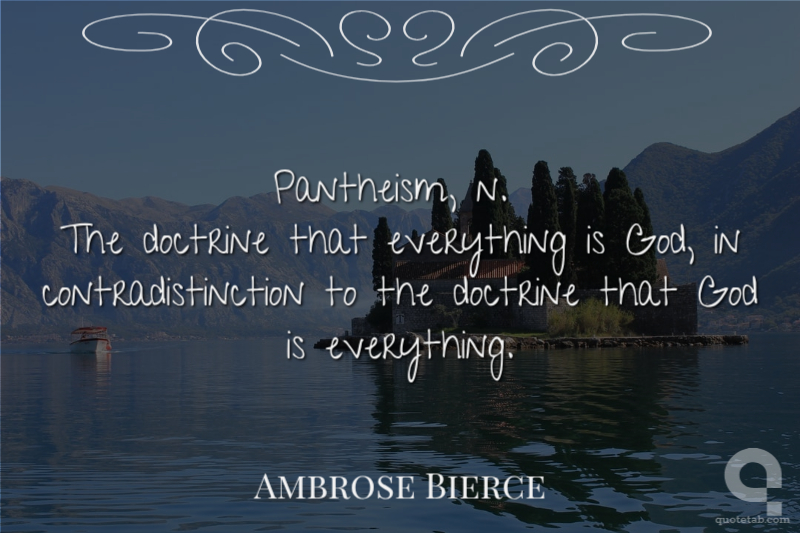 Pantheism, n. The doctrine that everything is God, in contradistinction to the doctrine that God is everything.