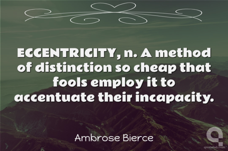 ECCENTRICITY, n. A method of distinction so cheap that fools employ it to accentuate their incapacity.