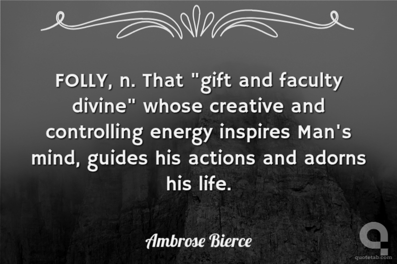 FOLLY, n. That "gift and faculty divine" whose creative and controlling energy inspires Man's mind, guides his actions and adorns his life.