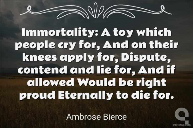 Immortality: A toy which people cry for, And on their knees apply for, Dispute, contend and lie for, And if allowed Would be right proud Eternally to die for.