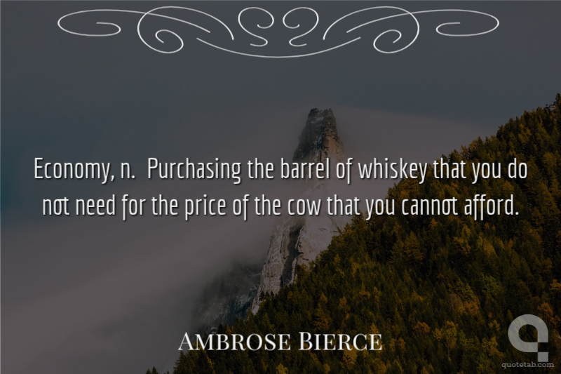 Economy, n. Purchasing the barrel of whiskey that you do not need for the price of the cow that you cannot afford.