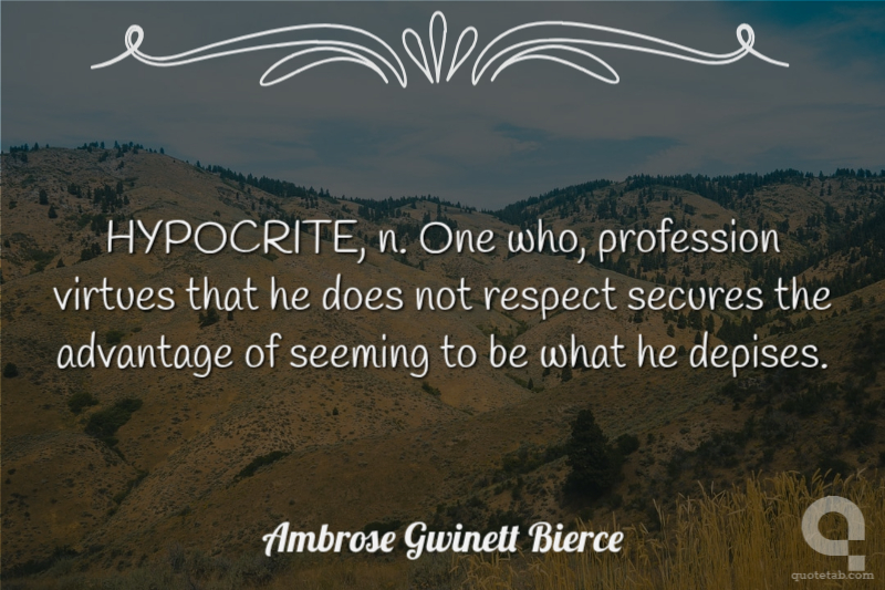 HYPOCRITE, n. One who, profession virtues that he does not respect secures the advantage of seeming to be what he depises.