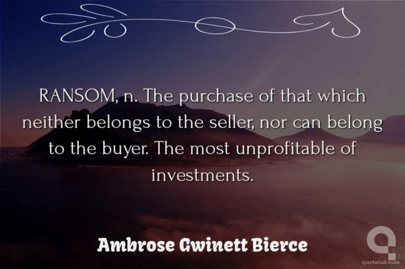 RANSOM, n. The purchase of that which neither belongs to the seller, nor can belong to the buyer. The most unprofitable of investments.