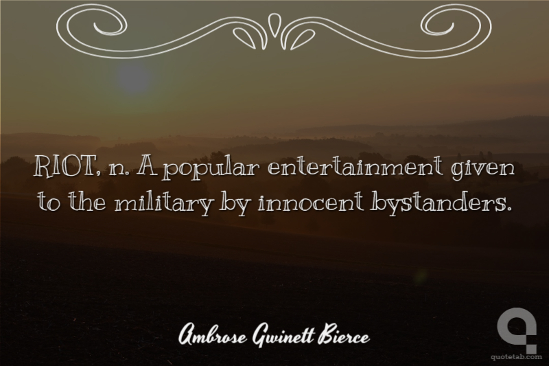 RIOT, n. A popular entertainment given to the military by innocent bystanders.