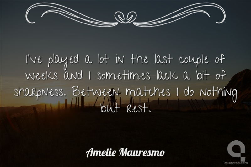 I've played a lot in the last couple of weeks and I sometimes lack a bit of sharpness. Between matches I do nothing but rest.