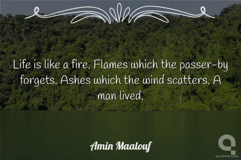Life is like a fire. Flames which the passer-by forgets. Ashes which the wind scatters. A man lived.