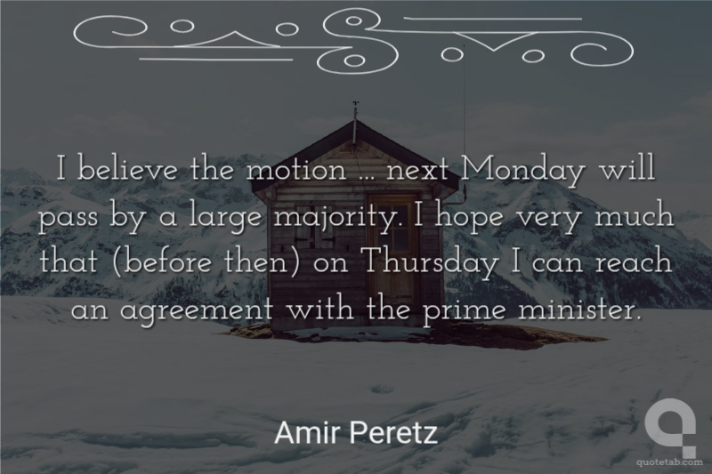 I believe the motion ... next Monday will pass by a large majority. I hope very much that (before then) on Thursday I can reach an agreement with the prime minister.