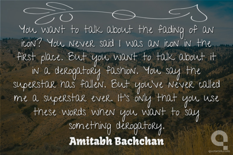 You want to talk about the fading of an icon? You never said I was an icon in the first place. But you want to talk about it in a derogatory fashion. You say the superstar has fallen. But you've never called me a superstar ever. It's only that you use these words when you want to say something derogatory.