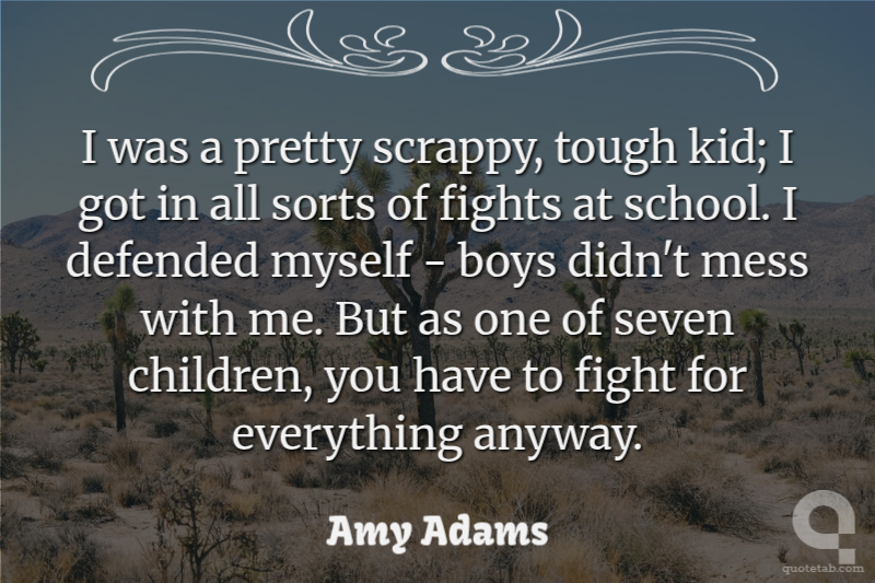 I was a pretty scrappy, tough kid; I got in all sorts of fights at school. I defended myself - boys didn't mess with me. But as one of seven children, you have to fight for everything anyway.