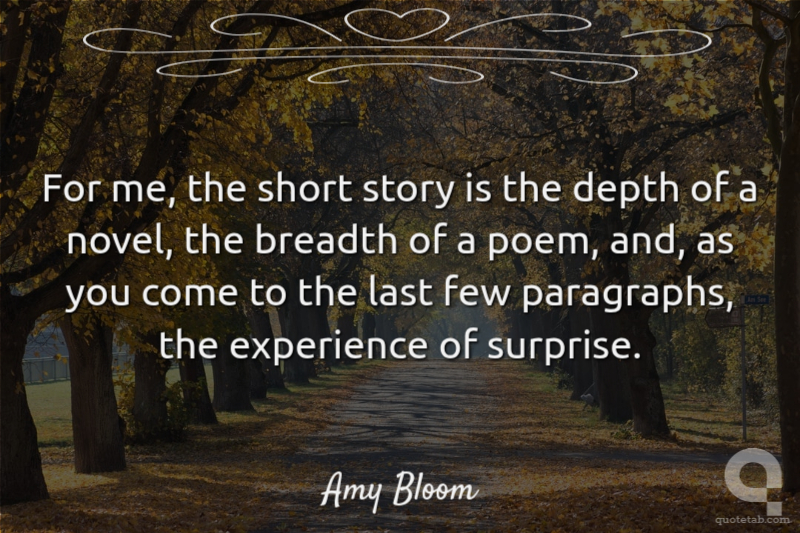 For me, the short story is the depth of a novel, the breadth of a poem, and, as you come to the last few paragraphs, the experience of surprise.