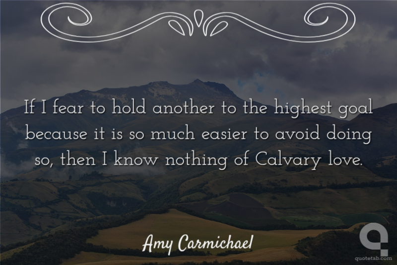 If I am afraid to speak the truth lest I lose affection, or lest the one concerned should say, "You do not understand", or because I fear to lose my reputation for kindness; if I put my own good name before the other's highest good, then I know nothing of Calvary love.