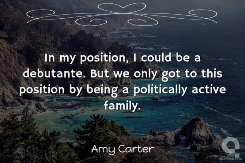 In my position, I could be a debutante. But we only got to this position by being a politically active family.