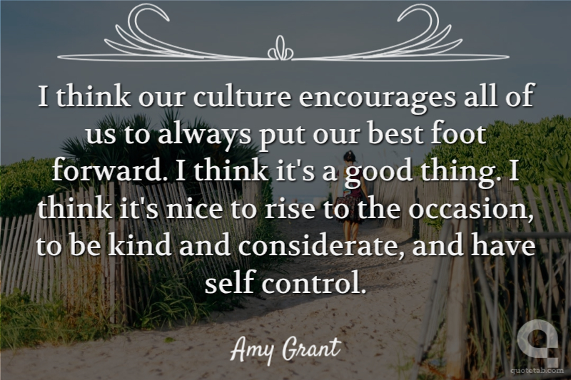 I think our culture encourages all of us to always put our best foot forward. I think it's a good thing. I think it's nice to rise to the occasion, to be kind and considerate, and have self control.