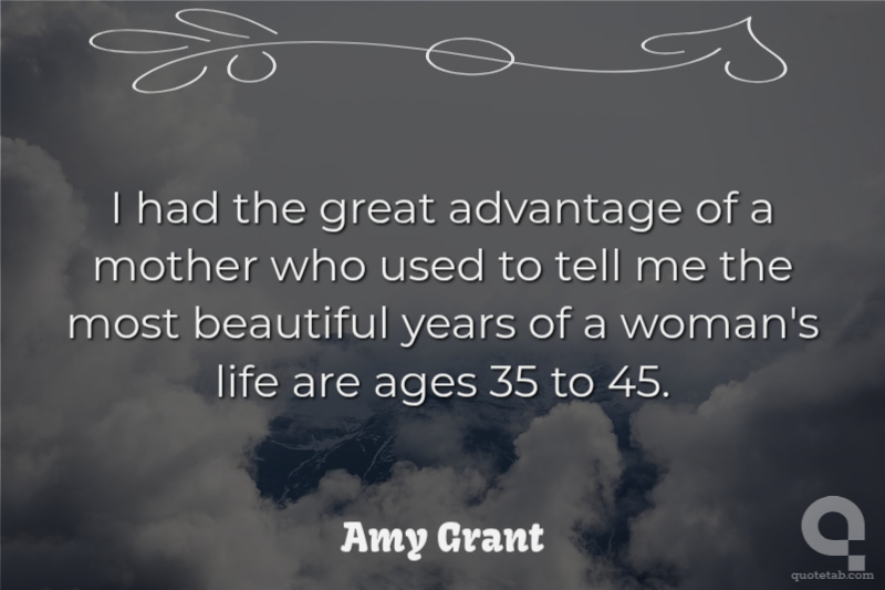 I had the great advantage of a mother who used to tell me the most beautiful years of a woman's life are ages 35 to 45.