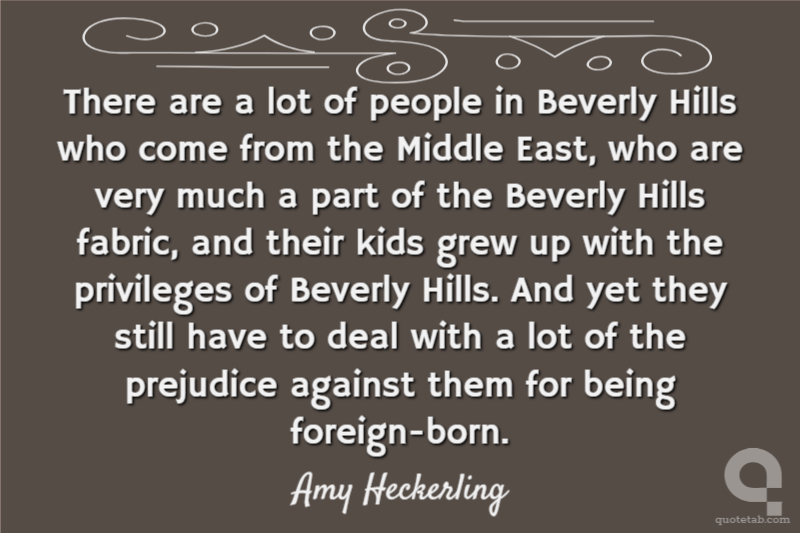 There are a lot of people in Beverly Hills who come from the Middle East, who are very much a part of the Beverly Hills fabric, and their kids grew up with the privileges of Beverly Hills. And yet they still have to deal with a lot of the prejudice against them for being foreign-born.