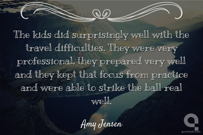 The kids did surprisingly well with the travel difficulties. They were very professional, they prepared very well and they kept that focus from practice and were able to strike the ball real well.