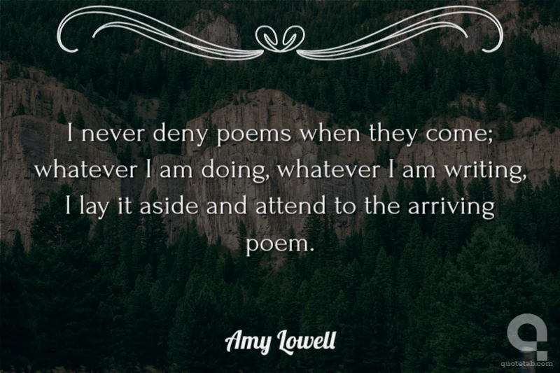 I never deny poems when they come; whatever I am doing, whatever I am writing, I lay it aside and attend to the arriving poem.