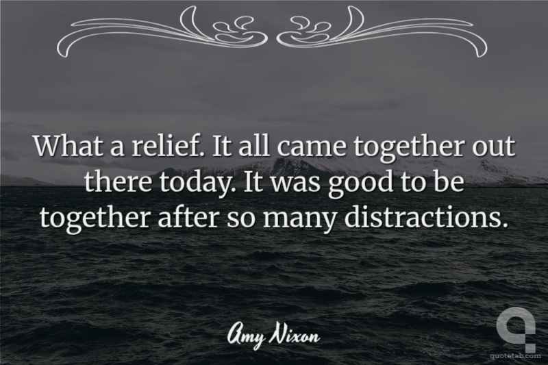 What a relief. It all came together out there today. It was good to be together after so many distractions.