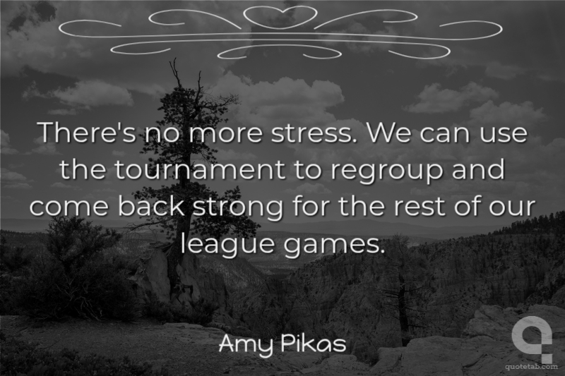 There's no more stress. We can use the tournament to regroup and come back strong for the rest of our league games.