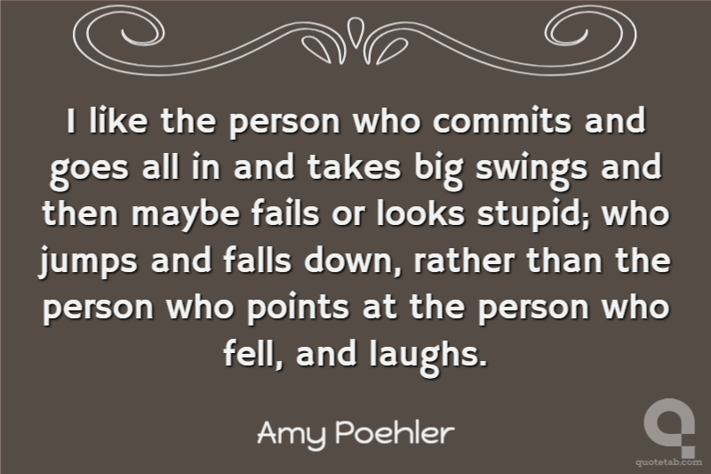 I like the person who commits and goes all in and takes big swings and then maybe fails or looks stupid; who jumps and falls down, rather than the person who points at the person who fell, and laughs.