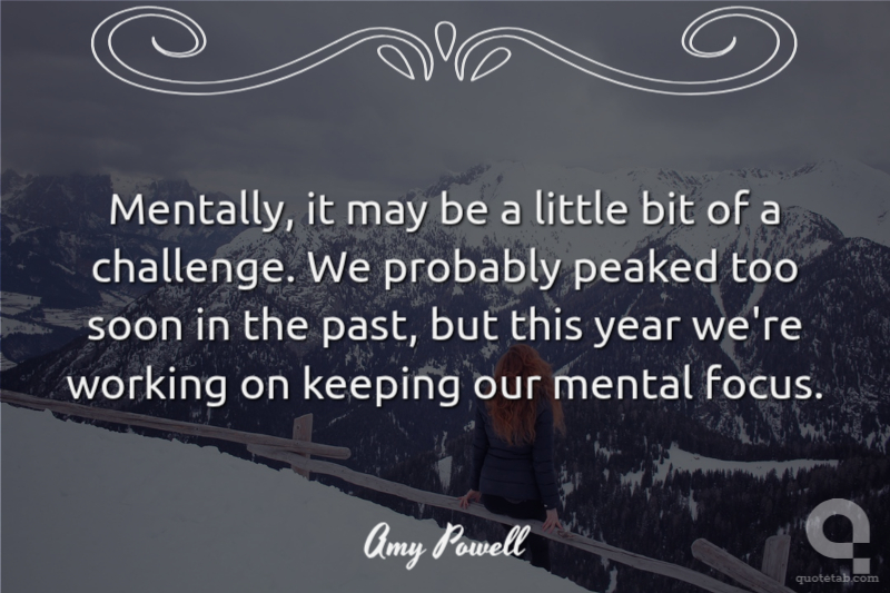 Mentally, it may be a little bit of a challenge. We probably peaked too soon in the past, but this year we're working on keeping our mental focus.