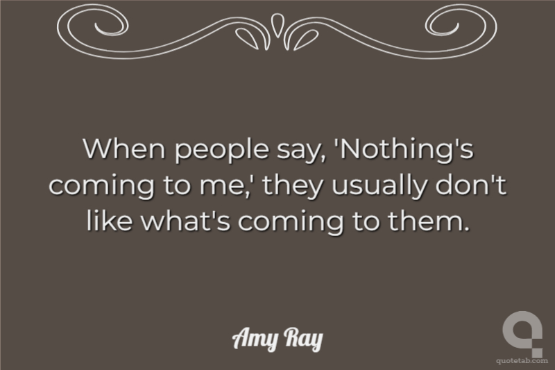 When people say, 'Nothing's coming to me,' they usually don't like what's coming to them.