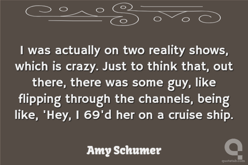 I was actually on two reality shows, which is crazy. Just to think that, out there, there was some guy, like flipping through the channels, being like, 'Hey, I 69'd her on a cruise ship.