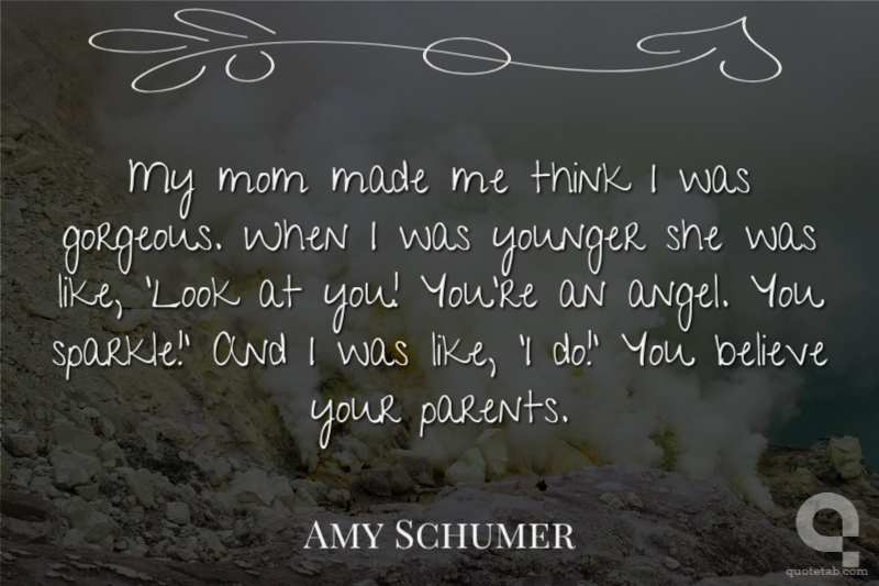 My mom made me think I was gorgeous. When I was younger she was like, 'Look at you! You're an angel. You sparkle!' And I was like, 'I do!' You believe your parents.