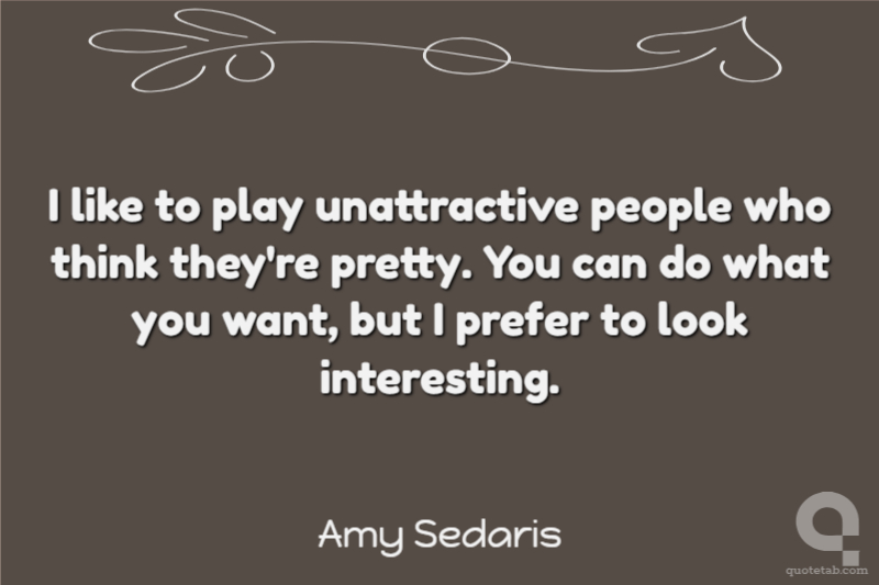 I like to play unattractive people who think they're pretty. You can do what you want, but I prefer to look interesting.